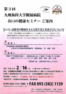 九州歯科大学附属病院 お口の健康セミナーご案内
