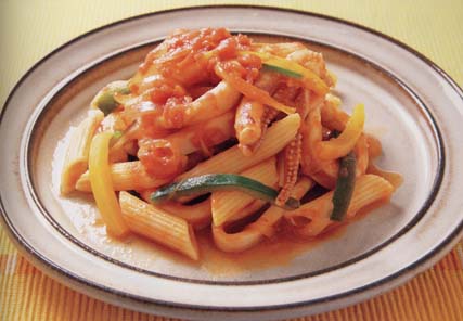 いかとショートパスタのトマト煮