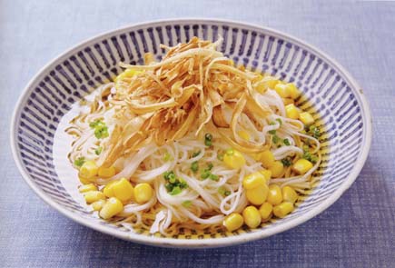 揚げごぼうとコーンのぶっかけそうめん